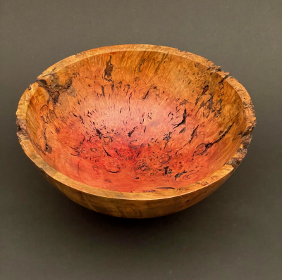 Bowl made from a Cherry Tree Burl. Stained with spirit dyes. Finished with Carnauba wax. Diameter 260mm, Height 110mm