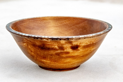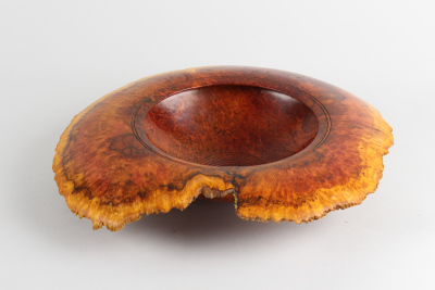 Coolabah Burl that wills the viewer to study the unique grain patterns. The beads turned inside draw the eye into the depths of the bowl like looking into a pond 280mm wide. A unique piece Would grace any palatial home.