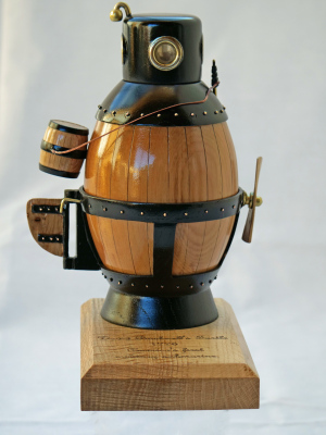 Inspired by America's first military submarine designed in 1776 by David Bushnell. Deployed on Sept 6th it reached the HMS Eagle but failed to attach the explosives. Materials: Oak, Matai, Epoxy, Brass, Crush-grind Mechanism, Acrylic & lacquer finish, 210mm High.